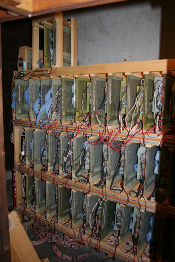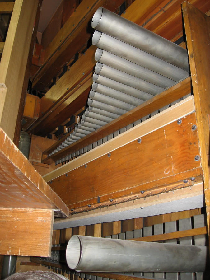 a lot of wiring, wind reservoirs, regulators and tremulants occupy most