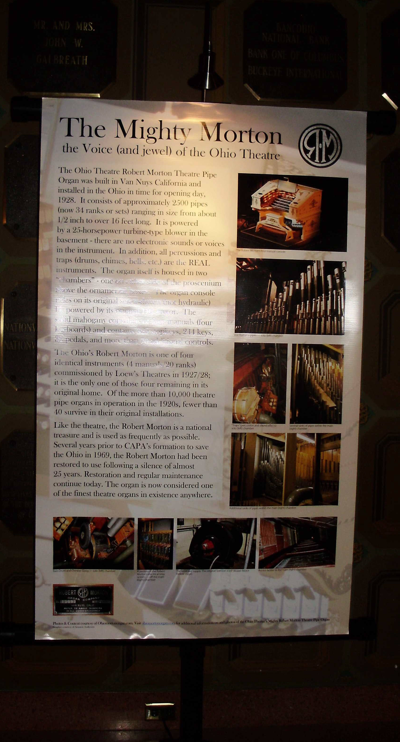 | Ohio Theatre Robert Morton organ home | Organ Overview | Organ Photos | Organ Specifications | Organ Events | Articles of Interest | Links to Related Pages | E-mail the webmaster |