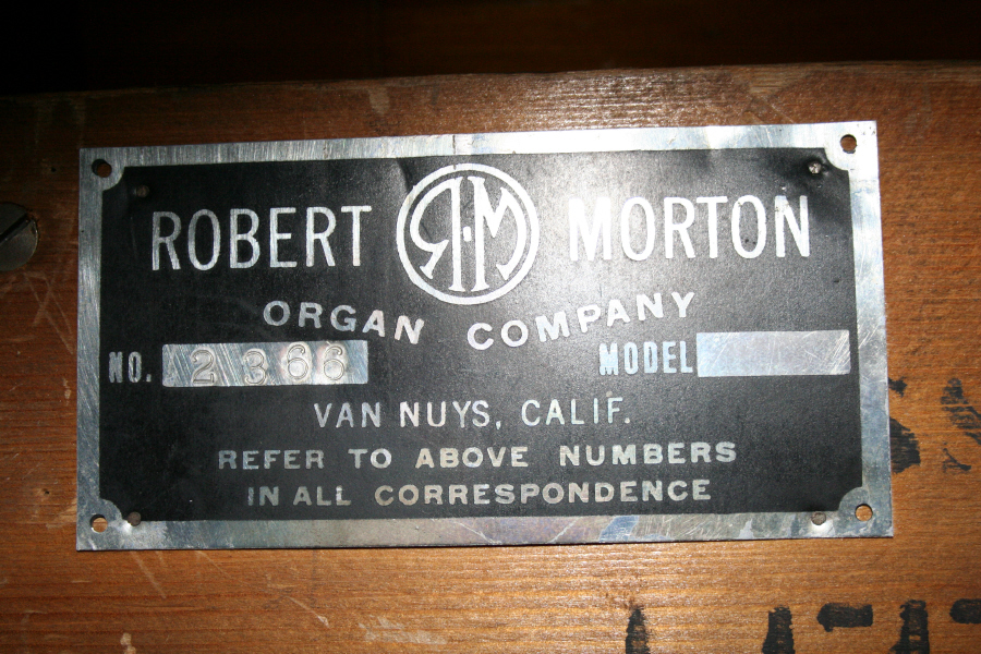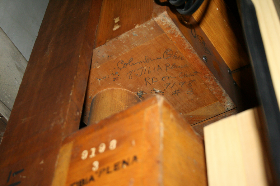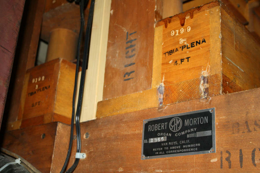 a pipe builder for Robert Morton. Below his name is etched 15"