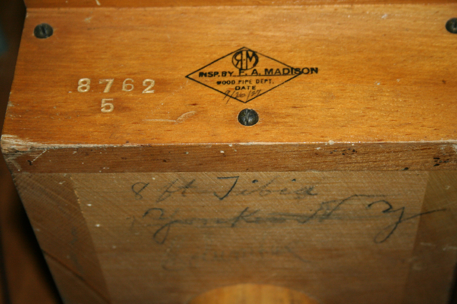Salicional pipe has job number 8366 stamped on it. A.D. March was