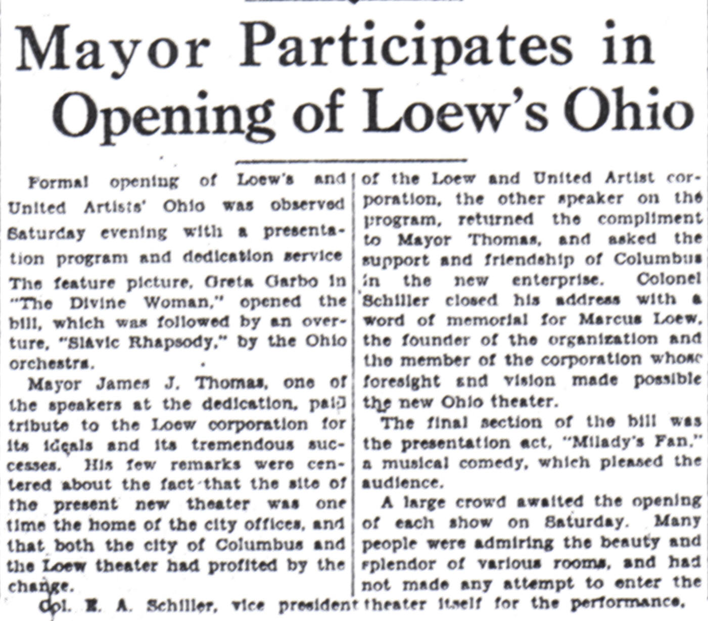 | Ohio Theatre Robert Morton organ home | Organ Overview | Organ Photos | Organ Specifications | Organ Events | Articles of Interest | Links to Related Pages | E-mail the webmaster |