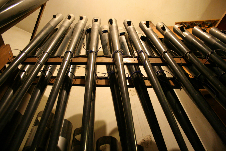 the foreground the rather oddly shaped pipes of the 8'