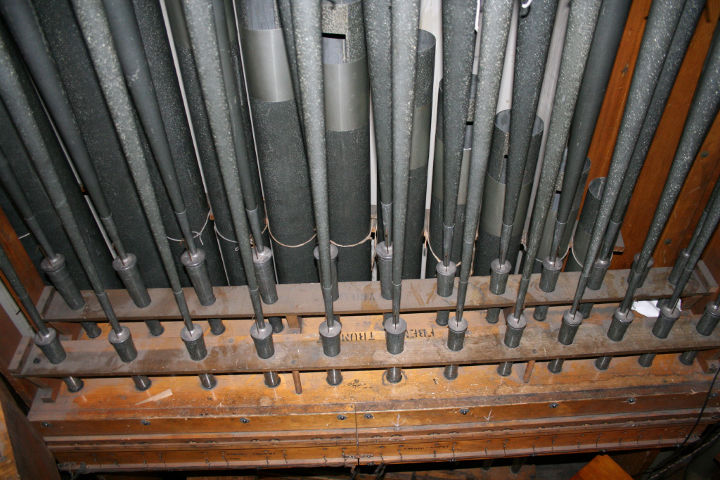 top level of pipes houses the 8' English Horn, 8' French Trumpet, 8'